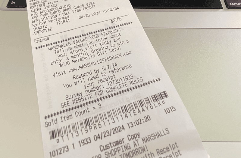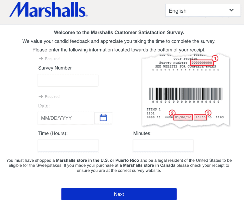 The receipt will instruct you to visit www.marshallsfeedback.com to complete the short survey and enter for your chance to win.
